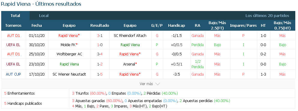 Rapid de Viena tratará de compensar las derrotas consecutivas ante el Arsenal y