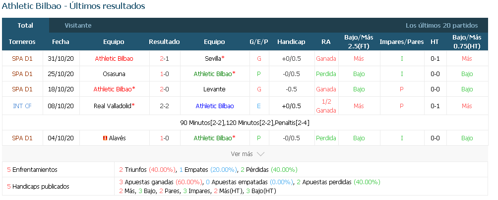 Predicción:Athletic Bilbao gana(1-2)