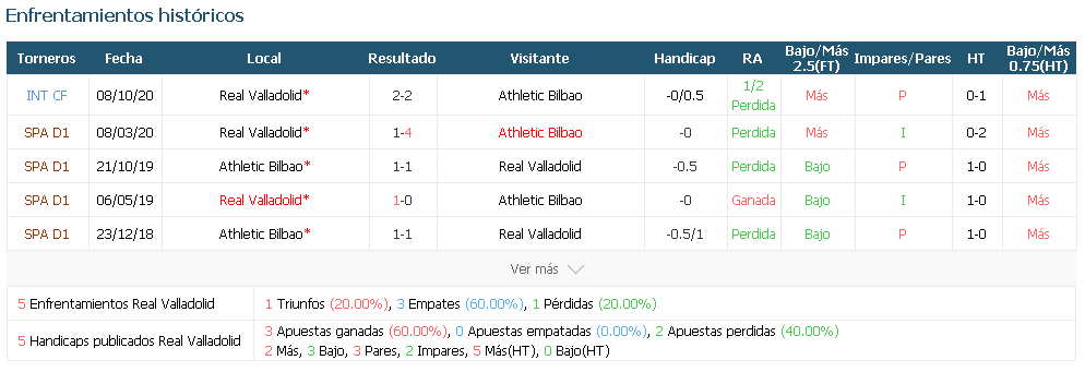 Valladolid VS Athletic Bilbao Pronóstico