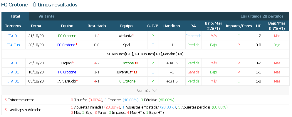 lesión para los anfitriones. Crotone, por otro lado, tuvo un lento comienzo de