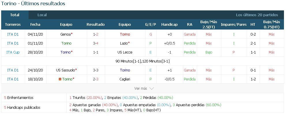 de su buen rendimiento en su último partido de liga, el Torino fue finalmente