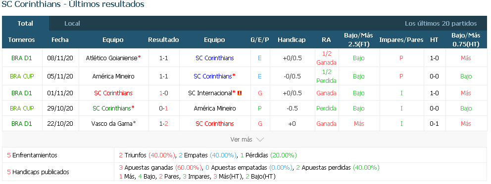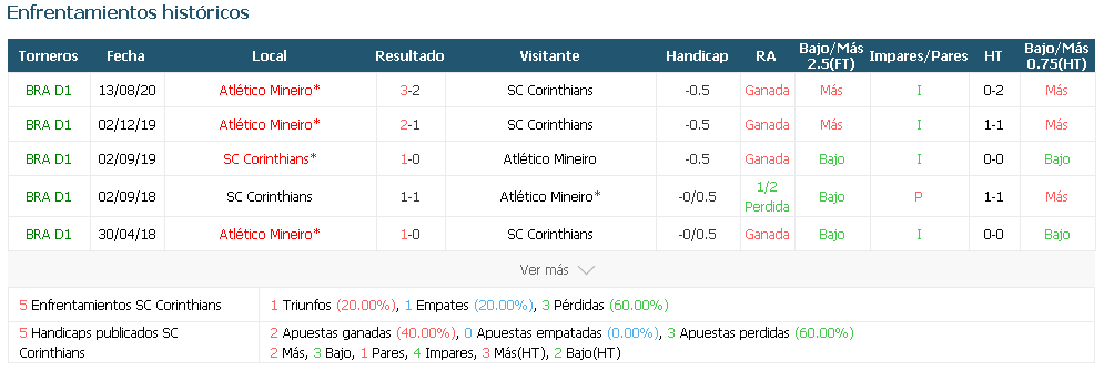 las últimas 12 recepciones al Atlético Mineiro, Corinthians ganó.