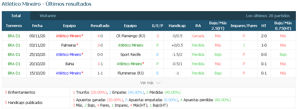 momento de forma de los visitantes, con sólo 1 victoria en los últimos 5 días.