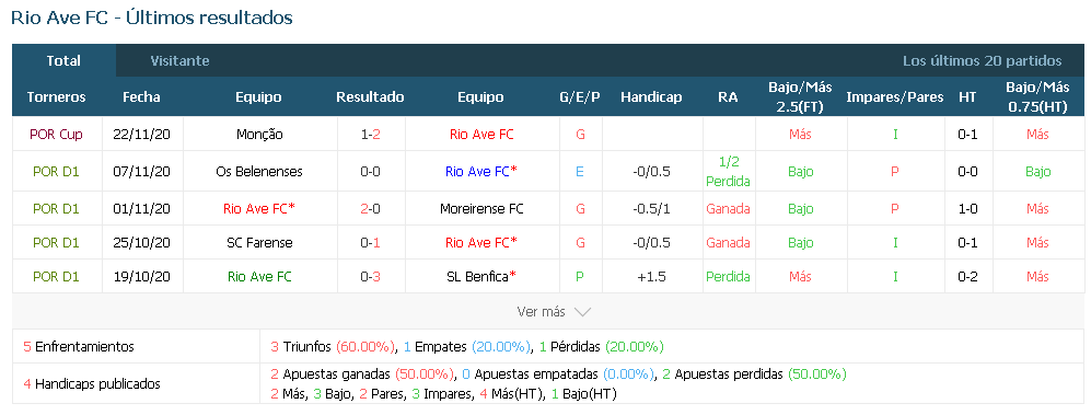 En los cuatro días de Rio Ave como visitante hubo menos de 2,5 goles.