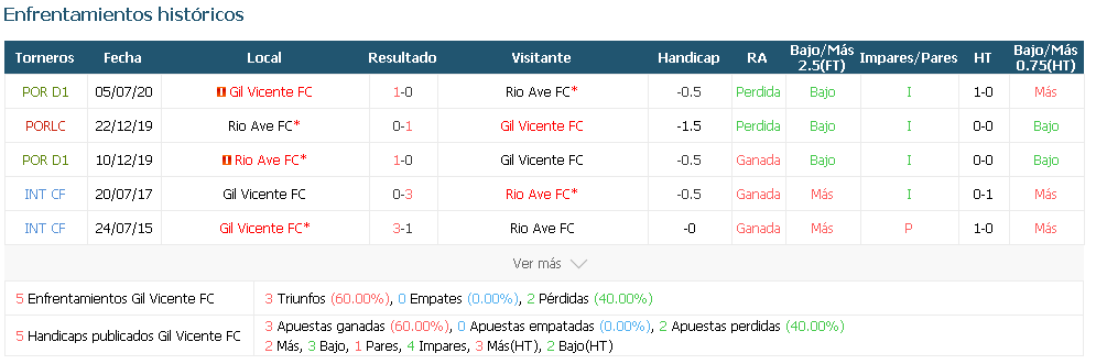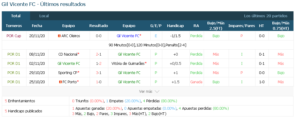 En dos de los tres días de visita de Gil Vicente hubo menos de 2,5 goles.