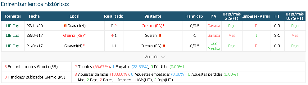 dos últimos enfrentamientos entre los dos emblemas, el Gremio ganó.