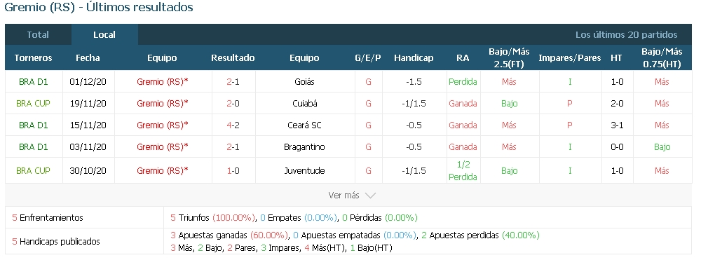 Gremio ha ganado 10 de los últimos 11 juegos jugados.