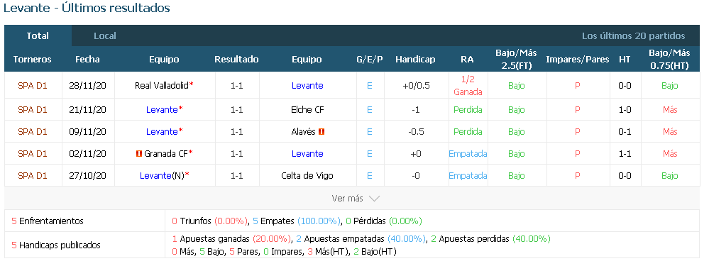Levantinos empataron 1-1 con cada uno de sus cinco anteriores rivales en