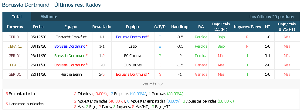 portería a cero en los últimos cinco partidos. El Dortmund ha recibido dos o