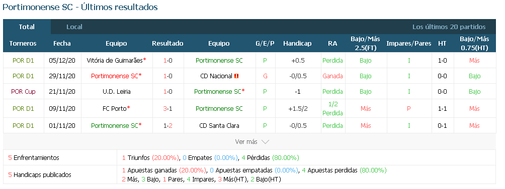 Portimonense ganó sólo uno de sus últimos cinco encuentros de liga, al igual