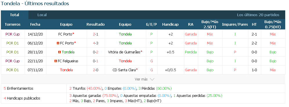 Tondela ha marcado en cuatro de sus últimos cinco partidos.