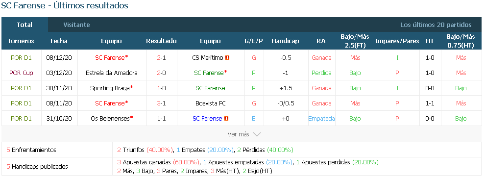 2-0. Los Farense son 14º, con ocho puntos, y vienen de una victoria en casa