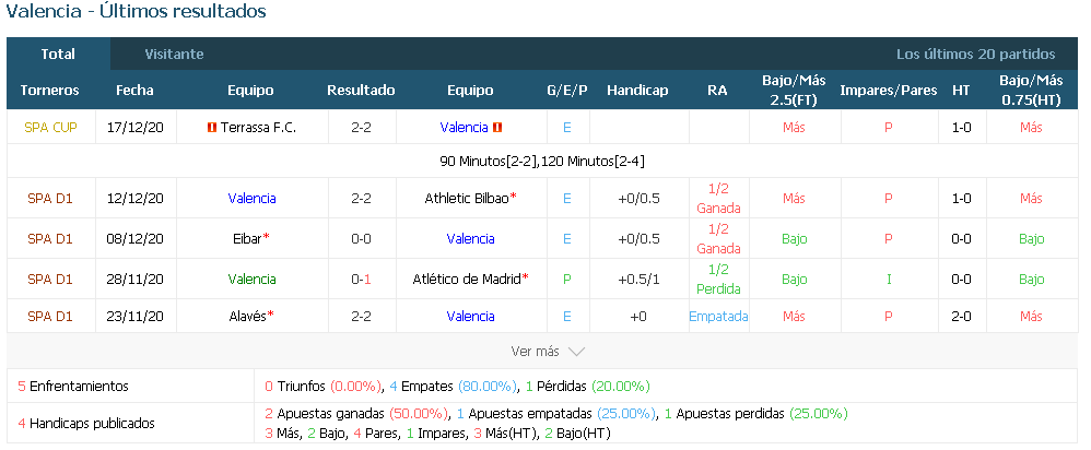 Valencia llega a este partido con una racha de cuatro partidos de liga sin una