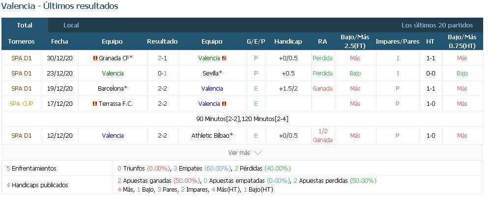 Valencia buscará enmendar la desafortunada derrota ante Granada cuando reciba a