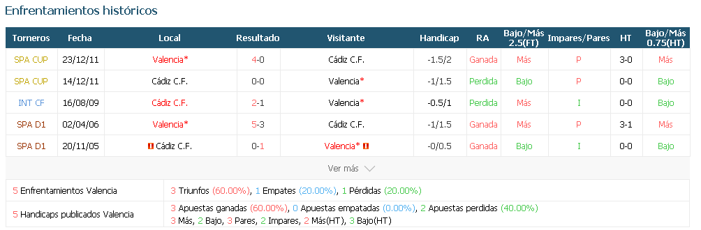 División desde 2006, cuando el Valencia superó al Cádiz por 5-3 en