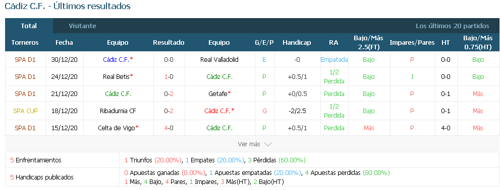 Cádiz en su Estadio de Mestalla en la 17ª jornada. El Che sufrió un nuevo bajón