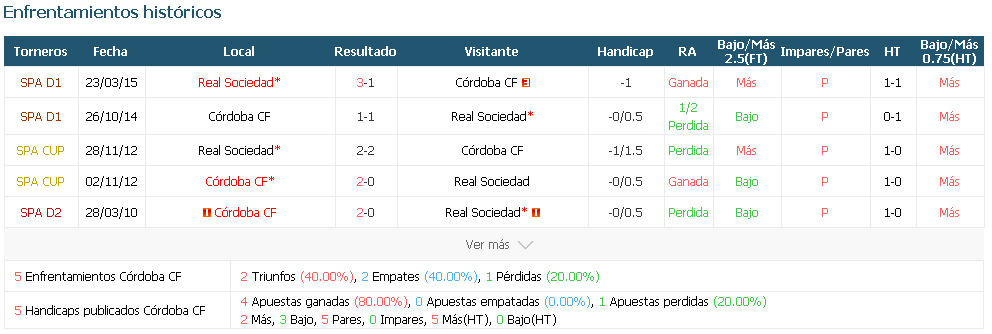 El partido de fútbol del miércoles en el Estadio Nuevo Arcángel enfrenta a Córdoba y a la Real Sociedad. La Real se enfrenta a la Copa del Rey tras la derrota ante el Barcelona en las semifinales de la Supercopa de España y, sin duda, está deseando pasar a los octavos de final de la competición. Aunque Elustondo, Moya, Sangalli, David Silva y Sola han estado luchando con las lesiones últimamente, se debe considerar la posibilidad de ganar a domicilio.