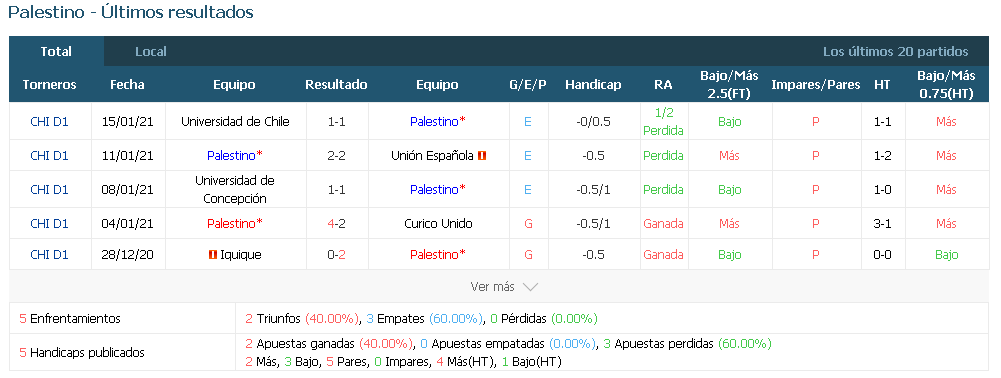 que en los últimos 6 partidos ganaron 3, empataron 1 y perdieron 2. Ambos