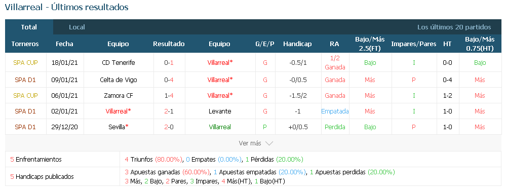 Predicción: Villarreal gana(2-0)