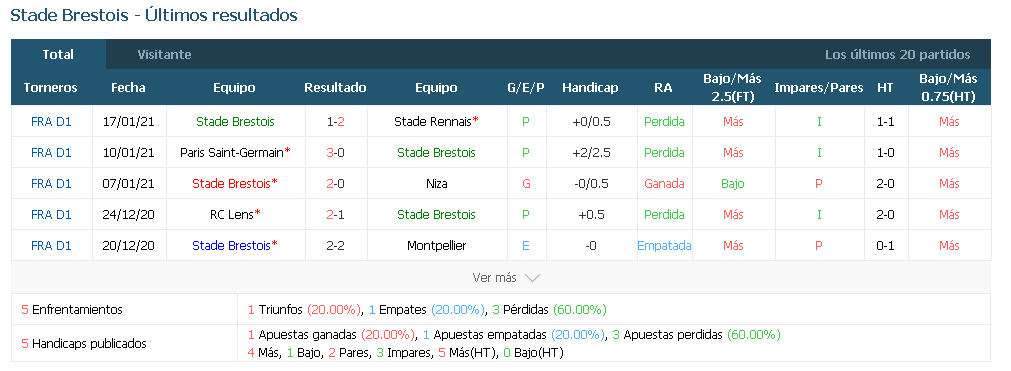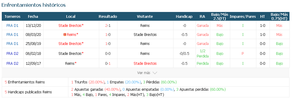 el Brest, los dos últimos de la tabla. El Reims llega al partido tras una