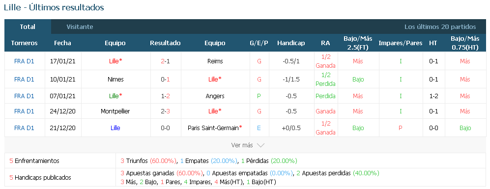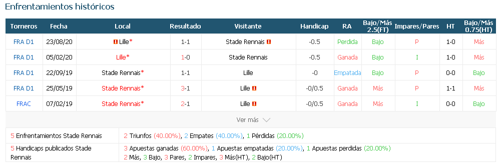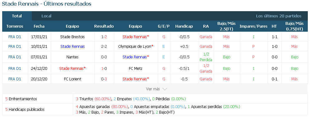 todas en Lille. Hay que tener en cuenta que el Rennes busca su sexta victoria