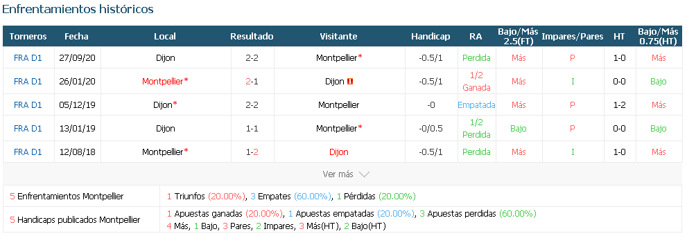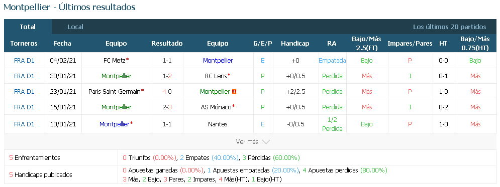 su último encuentro en el Stade de la Mosson, el Montepellier se impuso por 2-1