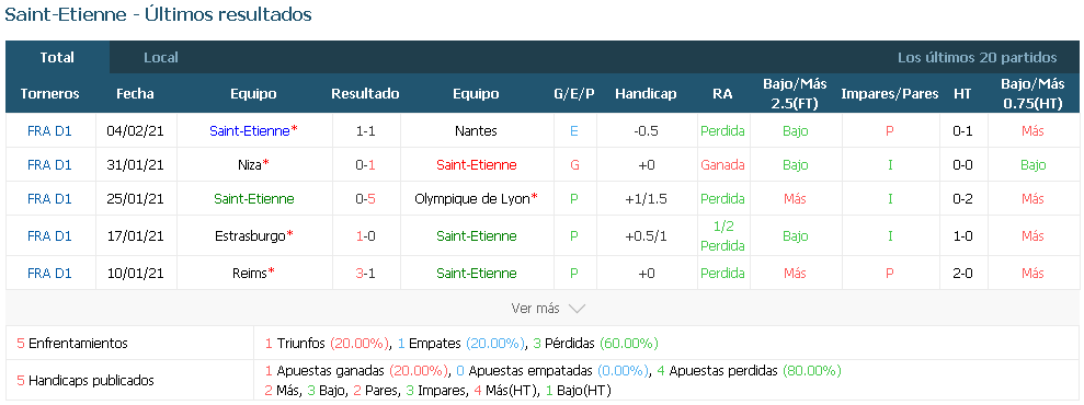 últimos partidos de liga, y seguramente es capaz de igualar al Saint Etienne a