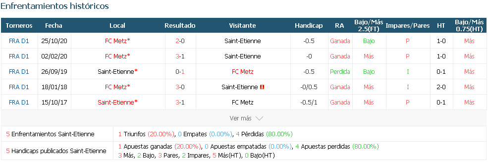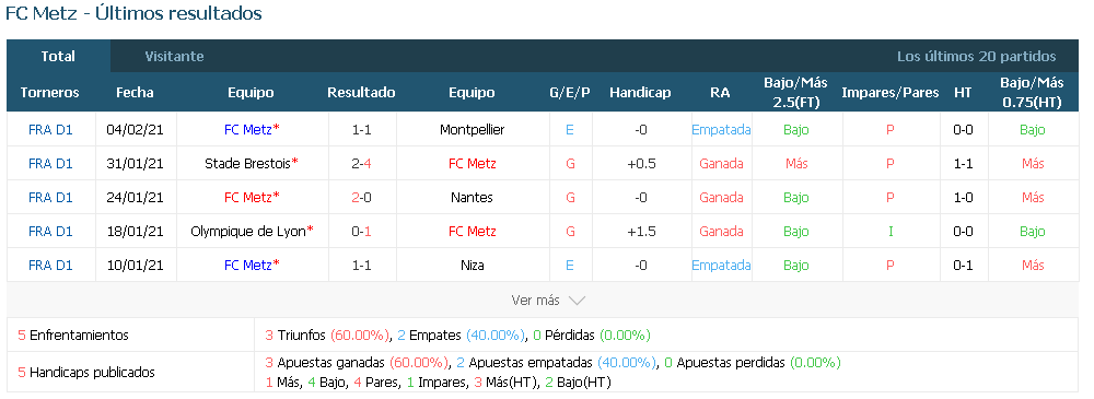 su parte, están en plena forma últimamente. El Metz está invicto en los seis