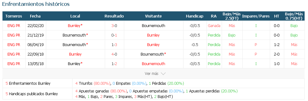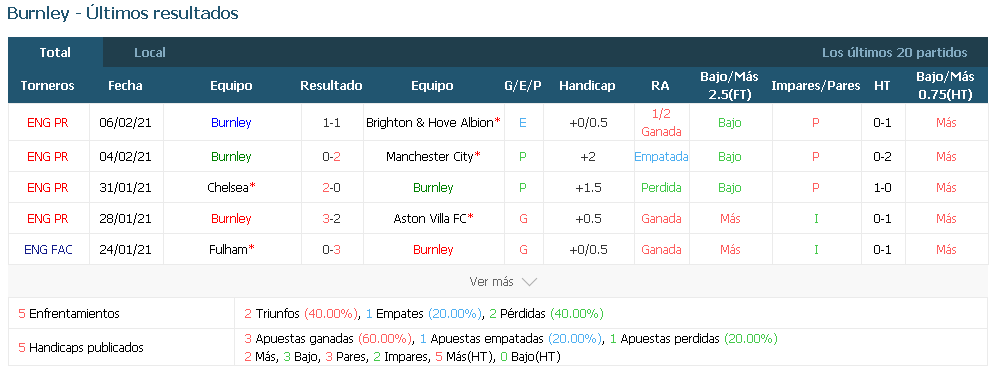 muchos goles en los partidos del Burnley. En 12 de los últimos 15 partidos del