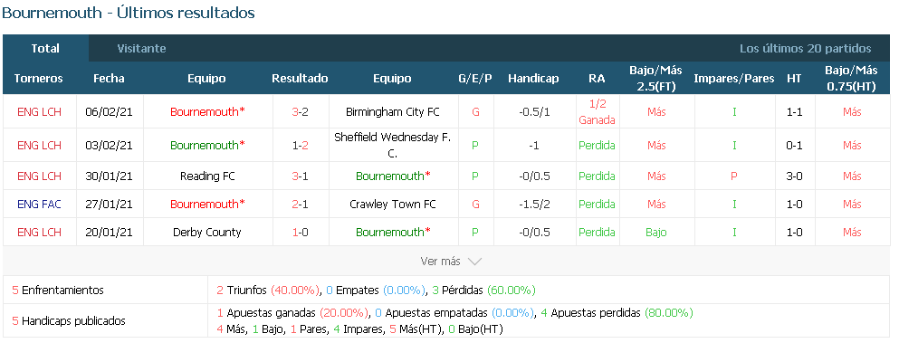 dos o más goles en los tres últimos encuentros. El Bournemouth sólo ha dejado