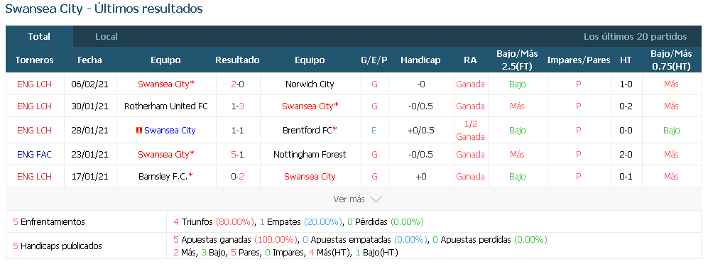 de una buena racha antes de este partido. El Swansea no ha perdido en sus