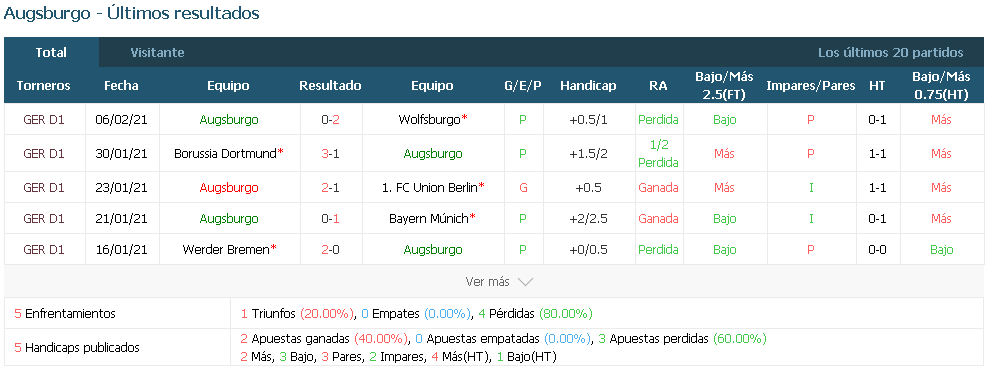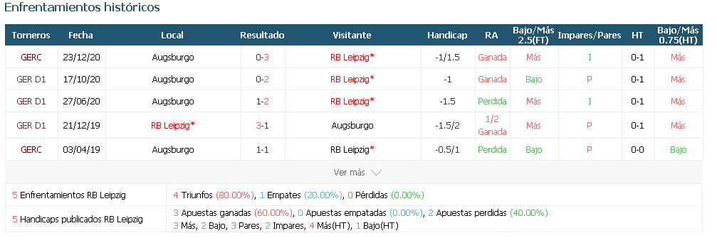 Los bávaros volvieron a sufrir un bajón de forma, al perder contra el Borussia Dortmund y el Wolfsburgo en los dos últimos partidos de liga. Dado que el Leipzig ha convertido su Red Bull Arena en una auténtica fortaleza, pronosticamos que los visitantes volverán a casa con las manos vacías. Cuando ambos equipos se enfrentaron en la DFB Pokal en diciembre, el Leipzig arrolló al Augsburgo por 3-0, lo cual es otra razón por la que estamos tentados de apostar por los locales.