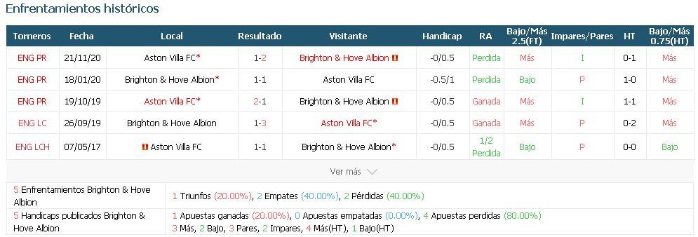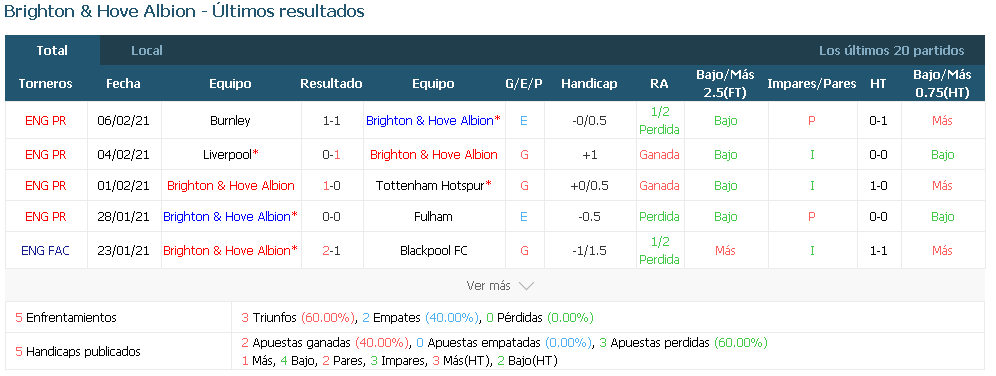 del Brighton, estamos tentados de apostar por el empate. En su último