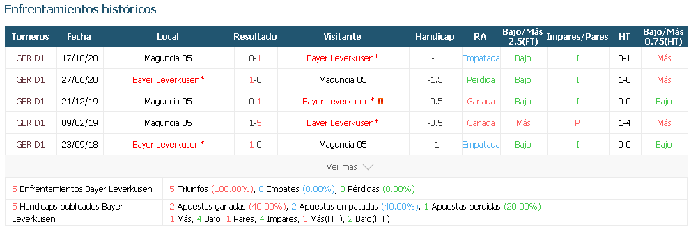 Leverkusen busca su séptima victoria consecutiva contra el Maguncia en la máxima