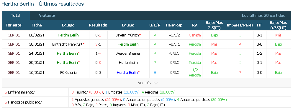 el actual estado de forma del Hertha. Desde que Nicolás González se lesionó en