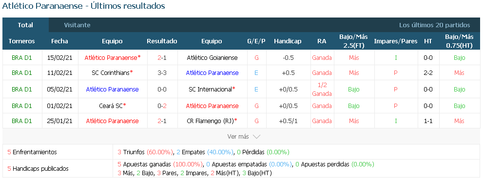 Enfrente está un equipo de Furacão que ocupa la 9ª posición y tiene un récord