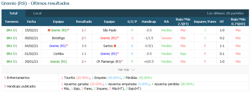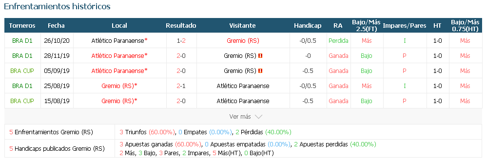 4 enfrentamientos entre el Grémio y este rival, creemos que este partido será