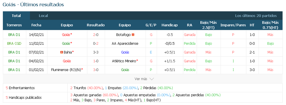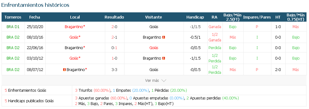 Goiás ha marcado 5 goles en sus últimos 3 encuentros con este rival.