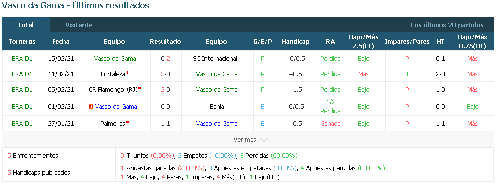 contra en 36 encuentros. El Vasco da Gama, por su parte, intenta