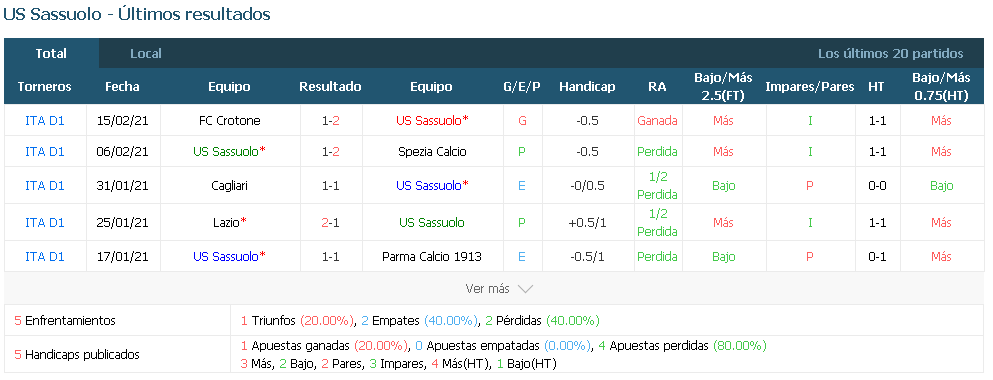 que el Sassuolo busca su cuarta victoria en casa de la temporada. Chiriches,