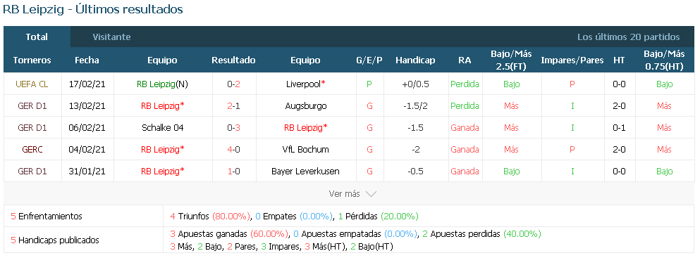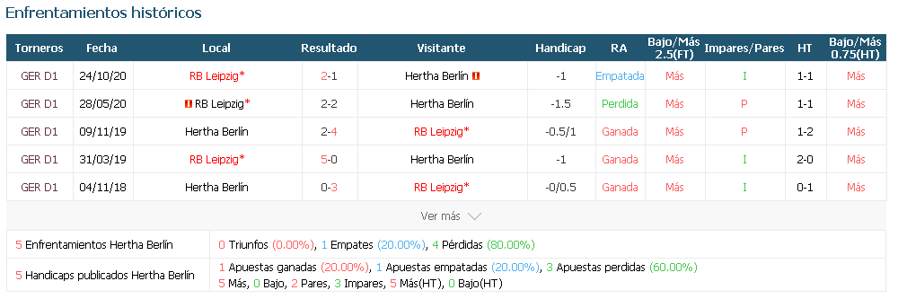 El club de la capital, por su parte, busca su primera victoria en la liga desde el 2 de enero de 2021, cuando derrotó al Schalke, un equipo que lucha por el descenso. En cualquier caso, el Leipzig es más equipo que el Hertha, y aunque los visitantes llegan al partido tras el enfrentamiento con el Liverpool en la Liga de Campeones, hay que tener en cuenta la victoria a domicilio. En la primera mitad de la temporada, los Red Bulls derrotaron al club de la capital por 2-1 en el Red Bull Arena.