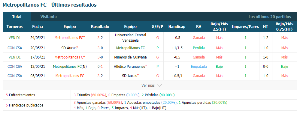 Melgar y Metropolitanos se enfrentan en el Estadio Monumental, en un partido correspondiente a esta etapa de la CONMEBOL Sudamericana (Fase de Grupos). Ambos equipos registran diferencias significativas entre los resultados en casa y fuera de ella, por lo que vale la pena prestar atención al factor localía.