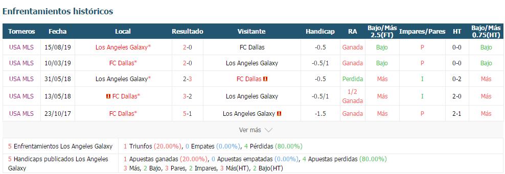Los Angeles Galaxy ocupa el primer lugar en el Oeste, mientras que FC Dallas ocupa el último lugar. Como resultado, esta vez somos más optimistas en casa.