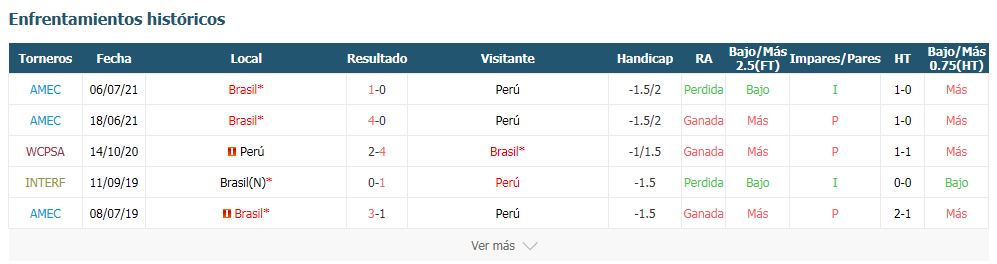 Brasil VS Perú Pronóstico