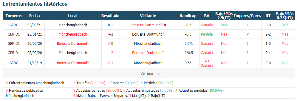 Mönchengladbach VS Borussia Dortmund Pronóstico