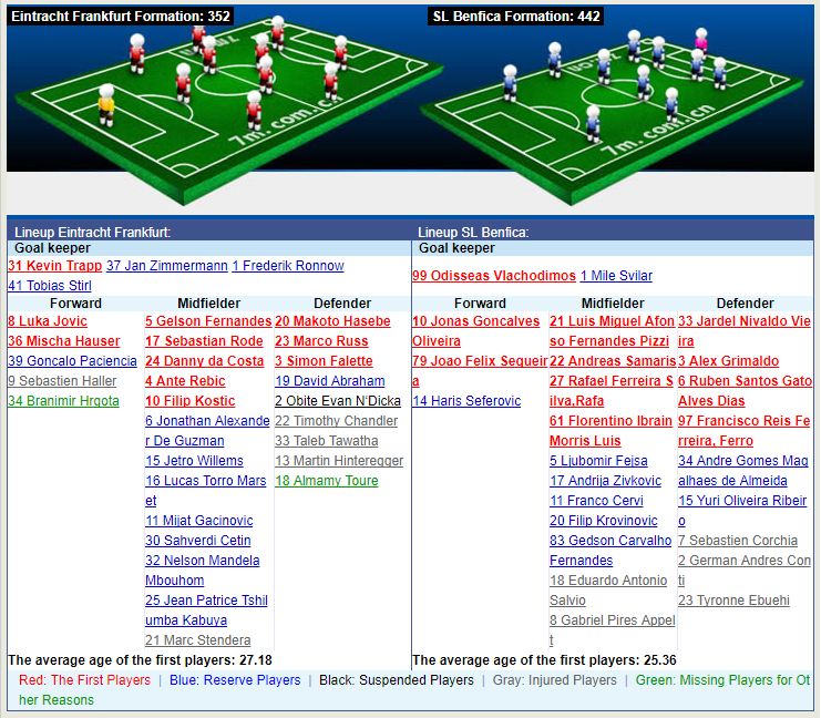 Eintracht Frankfurt vs Benfica Alineaciones Posibles