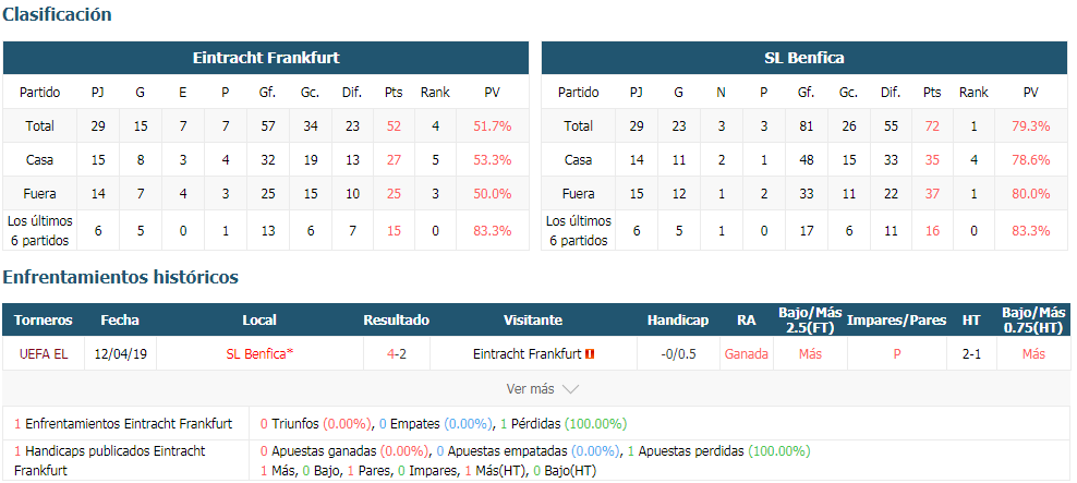 el Eintracht aspira a su quinta victoria en casa de la temporada en la Liga Europa.