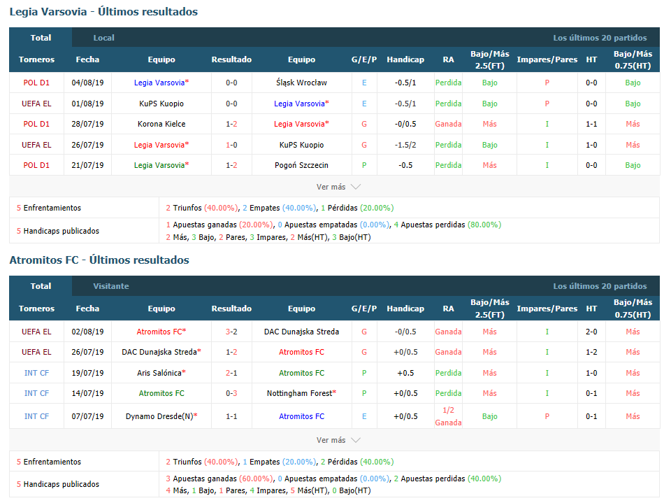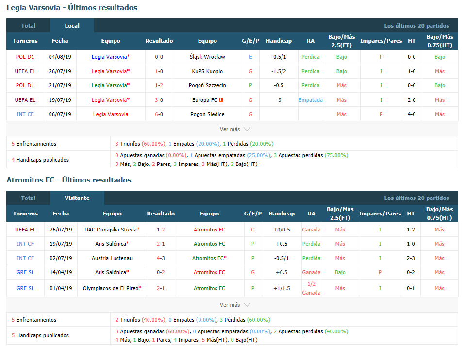 Legia Varsovia vs Atromitos FC Resultados y Cuotas: