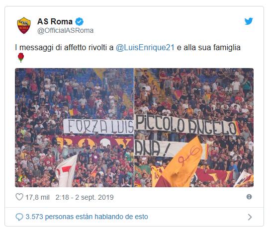 Los aficionados la Roma rindieron antes de que diera comienzo el encuentro un emotivo homenaje a Xana, la hija del técnico español Luis Enrique que nos dejó el pasado jueves debido a un osteosarcoma.