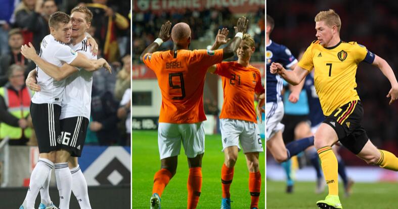 Alemania, Bélgica y Holanda dieron este lunes un nuevo paso al frente par clasificarse para la Eurocopa 2020 tras vencer su partidos a domicilio ante Irlanda del Norte, Escocia y Estonia respectivamente. Por su parte, Croacia dio la sorpresa al no pasar del empate en su visita a Azerbaiyán.